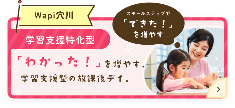 Wapiは児童発達支援を行っており、施設によって放課後等デイサービスや