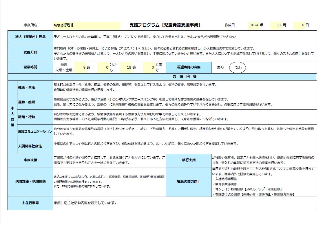 Wapi穴川 支援プログラム【児童発達支援事業】を公開します。