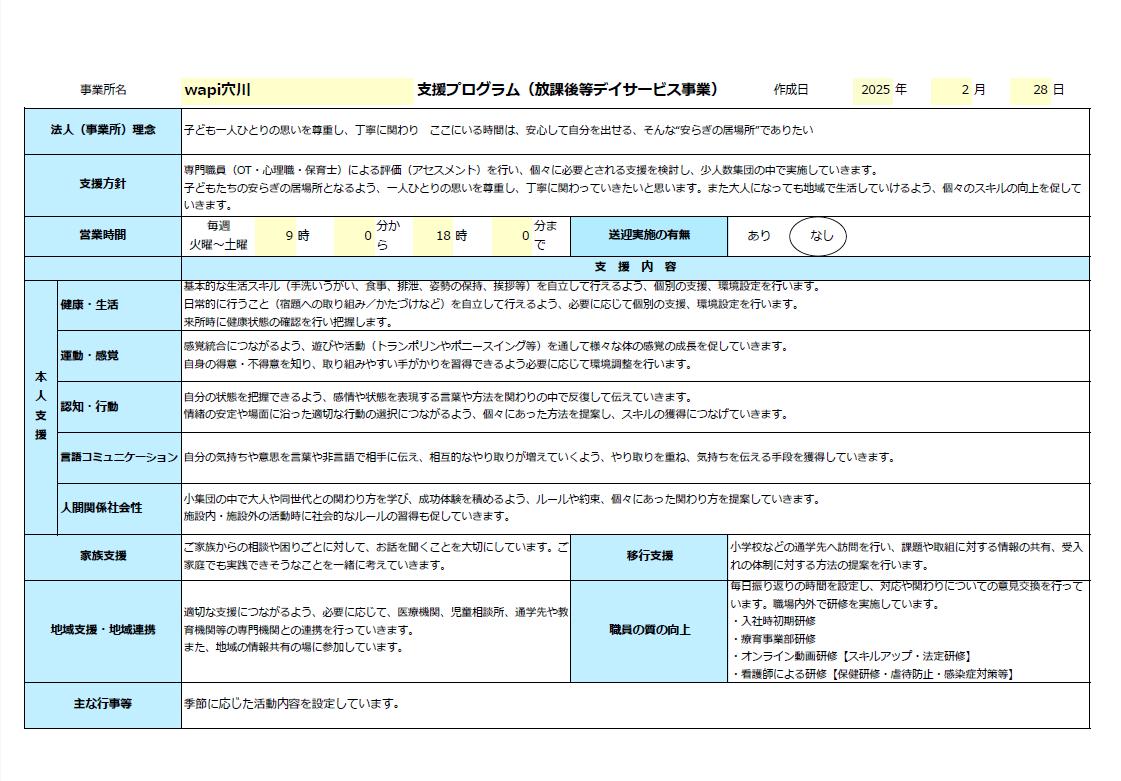 Wapi穴川 支援プログラム(放課後等デイサービス事業)を公開します!