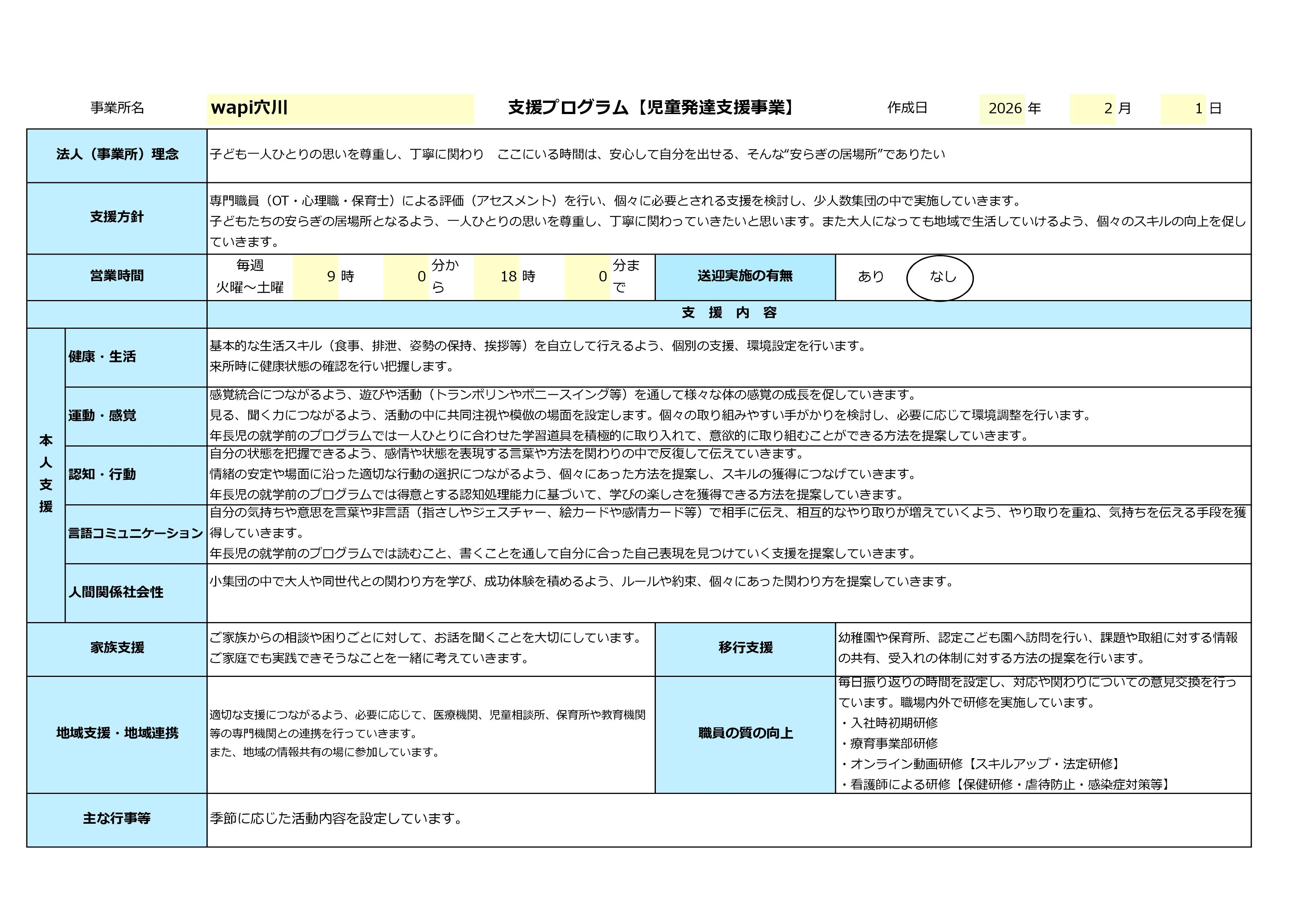 Wapi穴川 支援プログラム【児童発達支援事業】を公開します!